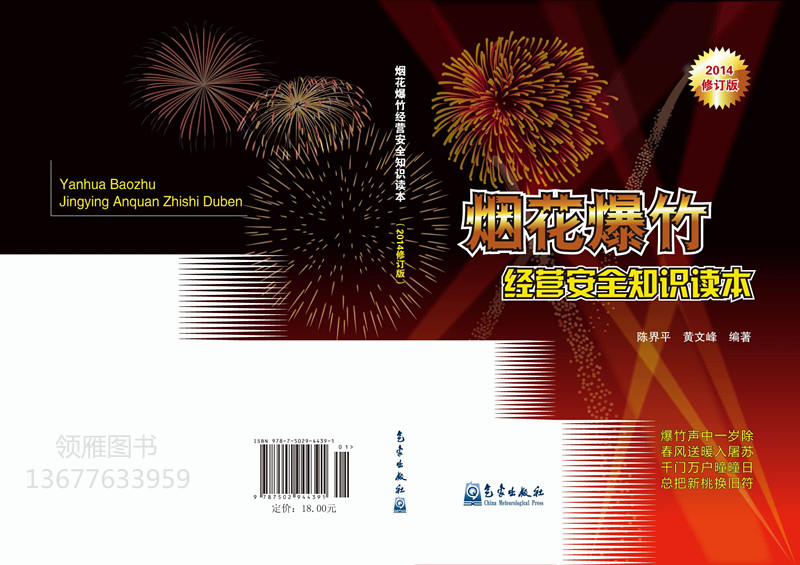 《煙花爆竹經(jīng)營(yíng)安全知識(shí)讀本》(2014年最新修訂) 圖書簡(jiǎn)介: 2014年10月,根據(jù)最新修改的《安全生產(chǎn)法》和《煙花爆竹經(jīng)營(yíng)許可實(shí)施辦法》(國(guó)家安監(jiān)總局令第65號(hào))對(duì)本書進(jìn)行修訂,同時(shí)本書含有最新標(biāo)準(zhǔn)GB10631—2013 《煙花爆竹 安全與質(zhì)量》和GB11652—2012《煙花爆竹作業(yè)安全技術(shù)規(guī)程》。 本書以提高煙花爆竹經(jīng)營(yíng)單位管理人員和從業(yè)人員的安全知識(shí)和技能為宗旨,系統(tǒng)地闡述了煙花爆竹產(chǎn)品知識(shí)、煙花爆竹經(jīng)營(yíng)安全管理、經(jīng)營(yíng)安全技術(shù)知識(shí)、煙花爆竹事故應(yīng)急救援和燃放安全等煙花爆竹經(jīng)營(yíng)人員所必須掌握的安全知識(shí)。 本書適用于各級(jí)政府安全監(jiān)管部門和煙花爆竹經(jīng)營(yíng)單位對(duì)經(jīng)營(yíng)管理人員和從業(yè)人員進(jìn)行安全培訓(xùn),也可作為廣大從事與煙花爆竹有關(guān)工作的人員的安全讀本。 目錄 第一章 煙花爆竹產(chǎn)品知識(shí) 第一節(jié) 煙花爆竹及其歷史演變 第二節(jié) 煙花爆竹產(chǎn)品安全與質(zhì)量 第二章 安全生產(chǎn)法律法規(guī)知識(shí) 第一節(jié) 安全生產(chǎn)法律體系 第二節(jié) 新《安全生產(chǎn)法》要點(diǎn)和煙花爆竹經(jīng)營(yíng)相關(guān)法律規(guī)定 第三章 煙花爆竹經(jīng)營(yíng)安全管理知識(shí) 第一節(jié) 煙花爆竹許可證制度和監(jiān)督管理 第二節(jié) 煙花爆竹批發(fā)經(jīng)營(yíng)安全管理 第三節(jié) 煙花爆竹零售經(jīng)營(yíng)安全管理 第四章 煙花爆竹經(jīng)營(yíng)安全技術(shù)知識(shí) 第一節(jié) 燃燒與防火 第二節(jié) 爆炸與防爆 第三節(jié) 電氣、雷電、靜電危害與防范 第四節(jié) 煙花爆竹藥劑安全性 第五節(jié) 煙花爆竹儲(chǔ)存安全措施 第五章 事故應(yīng)急救援 第一節(jié) 煙花爆竹火災(zāi)撲救 第二節(jié) 煙花爆竹事故應(yīng)急處置 第三節(jié) 應(yīng)急救援預(yù)案 第六章 燃放安全知識(shí) 第一節(jié) 煙花爆竹選購(gòu) 第二節(jié) 家庭燃放 第三節(jié) 專業(yè)燃放 第四節(jié) 煙花爆竹的銷毀 第七章 煙花爆竹事故案例 第一節(jié) 煙花爆竹行業(yè)事故原因分析 第二節(jié) 事故案例 附錄一 煙花爆竹安全管理?xiàng)l例 附錄二 煙花爆竹經(jīng)營(yíng)許可實(shí)施辦法
