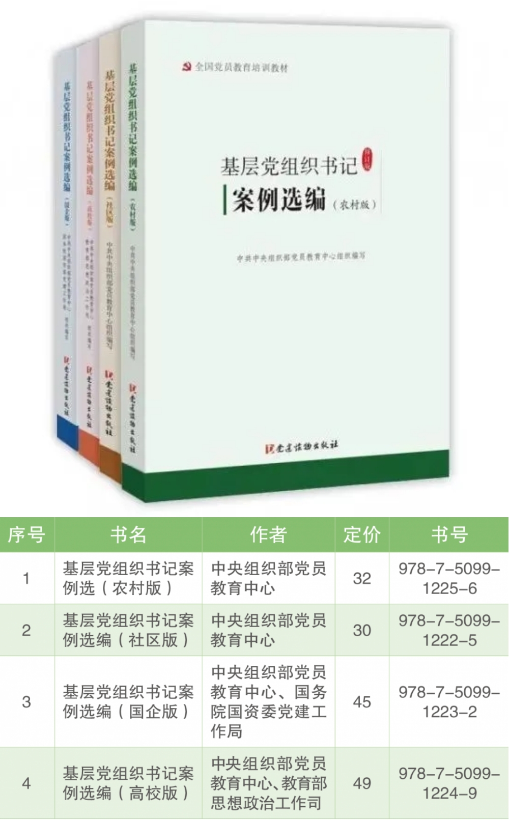 為幫助廣大基層黨組織書記掌握應(yīng)知應(yīng)會的基本知識和操作實務(wù)、學(xué)習(xí)借鑒先進基層黨組織的鮮活經(jīng)驗,中央組織部黨員教育中心組織編寫了“基層黨組織書記培訓(xùn)教材”,作為“全國黨員教育培訓(xùn)教材”之一。這套教材知識性、指導(dǎo)性、實用性強,既可作為基層黨組織書記普遍輪訓(xùn)、集中培訓(xùn)和任職培訓(xùn)的基本教材,也可作為基層黨組織書記的自學(xué)教材。